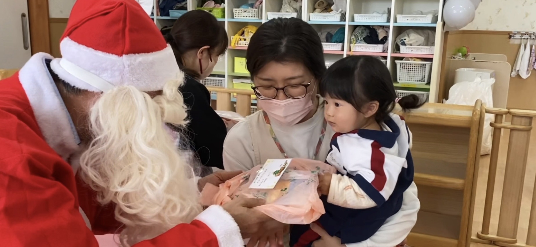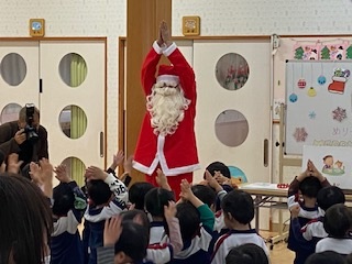 24日(水)ヤクルトの方がサンタさんになって来てくれました。一緒にダンスをして楽しみ、最後にサンタさんからプレゼントをもらいました。
