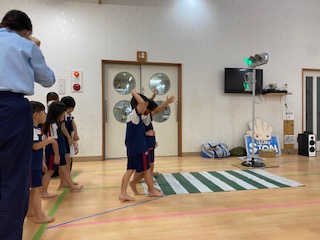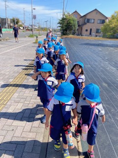 9月5日(金)交通安全教室を行いました。左右の確認をして横断歩道を渡る練習をしました。
