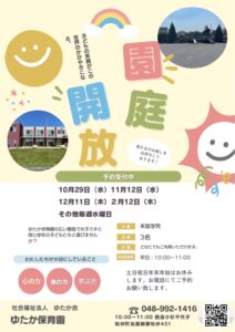 園庭解放のお知らせです。よろしければお友達を誘って是非遊びに来てください☺